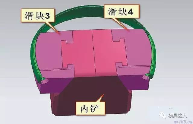 5. 倒扣2与倒扣5处是处在产品内部,所以只能做成内滑块,模架加承板,二次顶出。