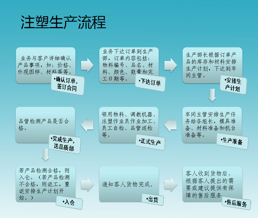 模具注塑生产流程图。点击按钮查看详细内容。